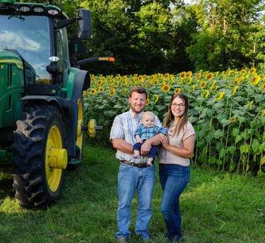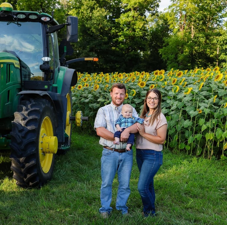 We are Caleb and Erin Carpenter, owners of Carpenter Farms, located in Greencastle, Indiana. Caleb is a first generation farmer who grows row crops, wheat, hay, and specializes in pumpkins. We offer custom harvesting for wheat and row crops. As well as assisting farmers grow their yields with custom soil sampling and nutrient assistance.
